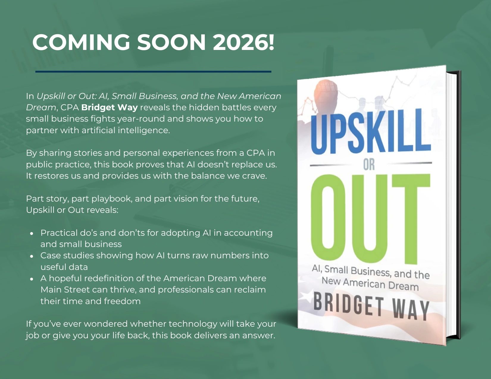 Bridget Way's new book about AI, small business, and the new American. Planned to be released late June.